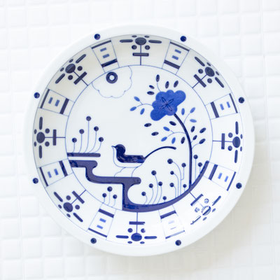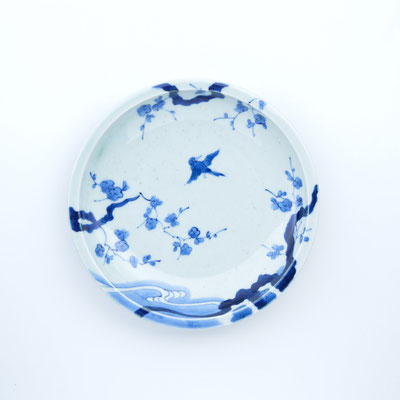 まず、どの意匠にするか、九州陶磁文化館蔵の柴田夫妻コレクションや他の美術館などの膨大な資料から選んだそうですが、いち早く気に入ったのが「染付梅鳥文」(柴田夫妻コレクション)でした。