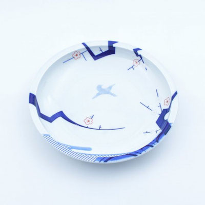 フォルムは、初期伊万里(黎明期の有田焼)に多く見られる円縁の7寸皿(直径21cm)を基本にして、その縮小サイズの4.5寸皿(直径14cm)の2アイテムに決定し、深さや重なりなどは使い勝手を熟考して、試作と修正を繰り返して、完成させました。